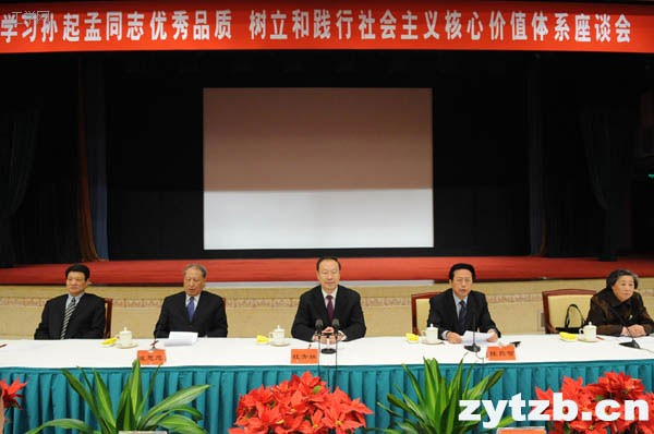 统一战线“学习孙起孟同志优秀品质,树立和践行社会主义核心价值体系”座谈会4月1日在北京召开。全国人大常委会副委员长 、民建中央主席陈昌智主持座谈会,全国政协副主席、中共中央统战部部长杜青林出席座谈会并发表讲话。