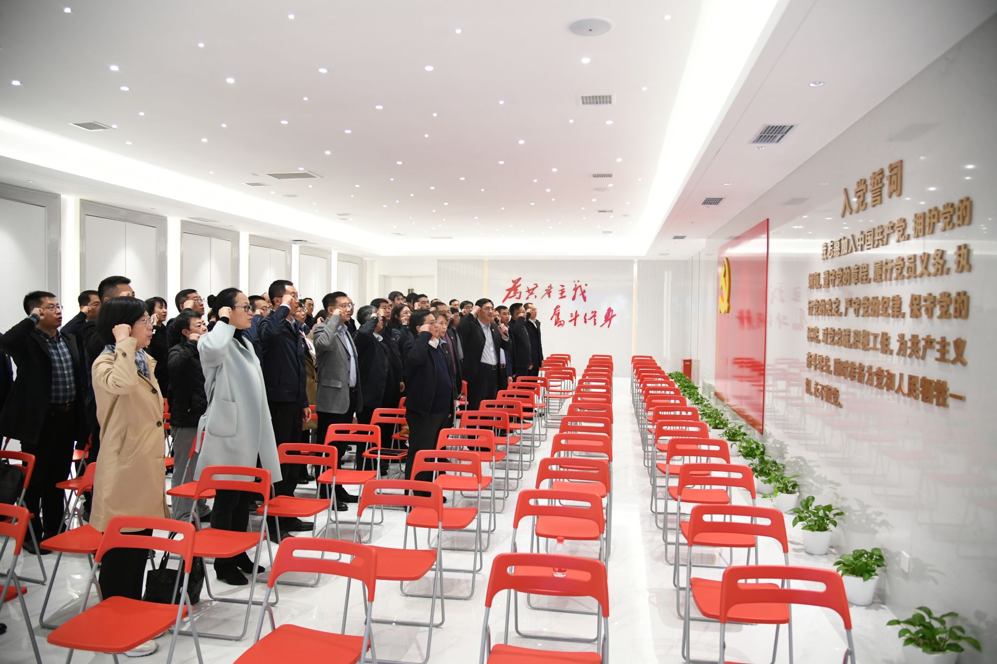 学校领导干部面向党旗庄严宣誓