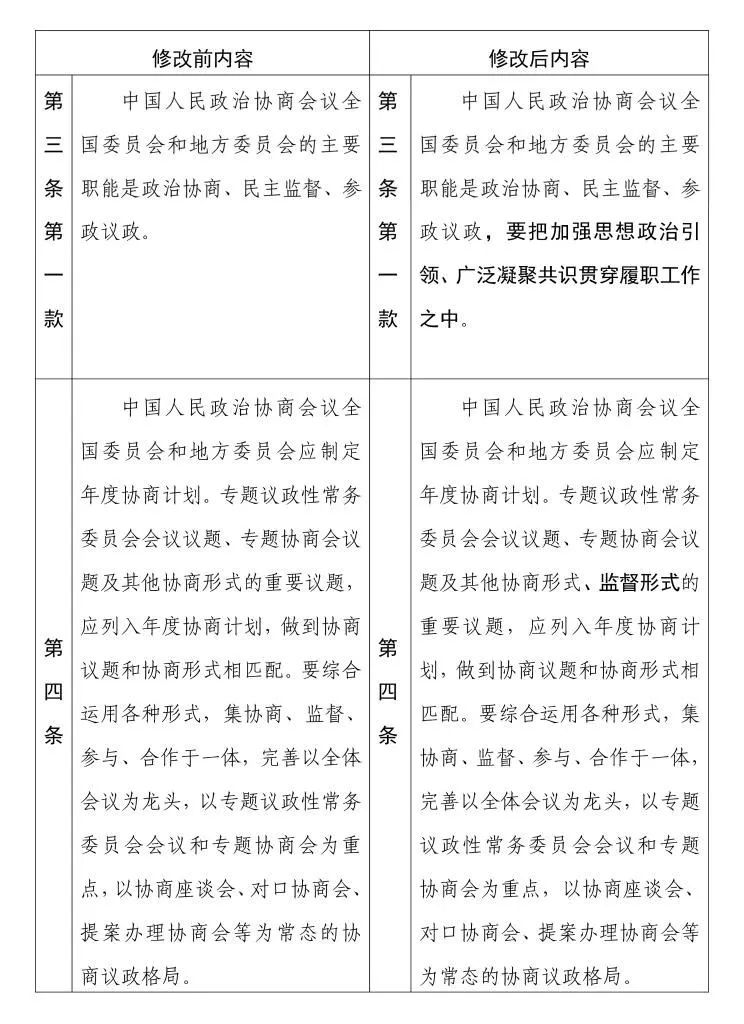 一目了然!中国人民政治协商会议章程修改前后内容对照表