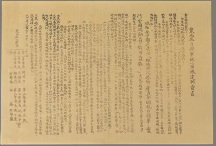▲1936年2月20日,东北人民革命军等武装联合发表《东北抗日联军统一军队建制宣言》,各抗日武装统编为东北抗日联军,从此,中国共产党领导的东北抗日游击战争进入新阶段。(图片来源:中国抗战胜利网)