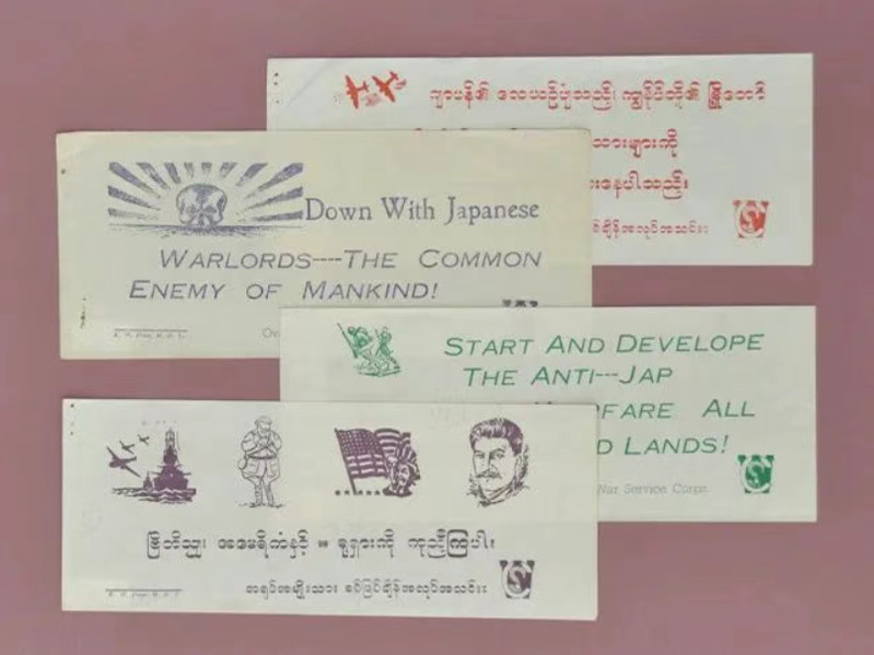 ▲缅甸华侨青年战时工作队“日本飞机在破坏我们的城市寺庙给市民们带来灾难”缅文宣传标语。(图片来源:中国人民抗日战争纪念馆)